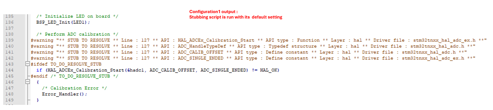 The script isolates every detected HAL1 function and macro using the stubbing flag.