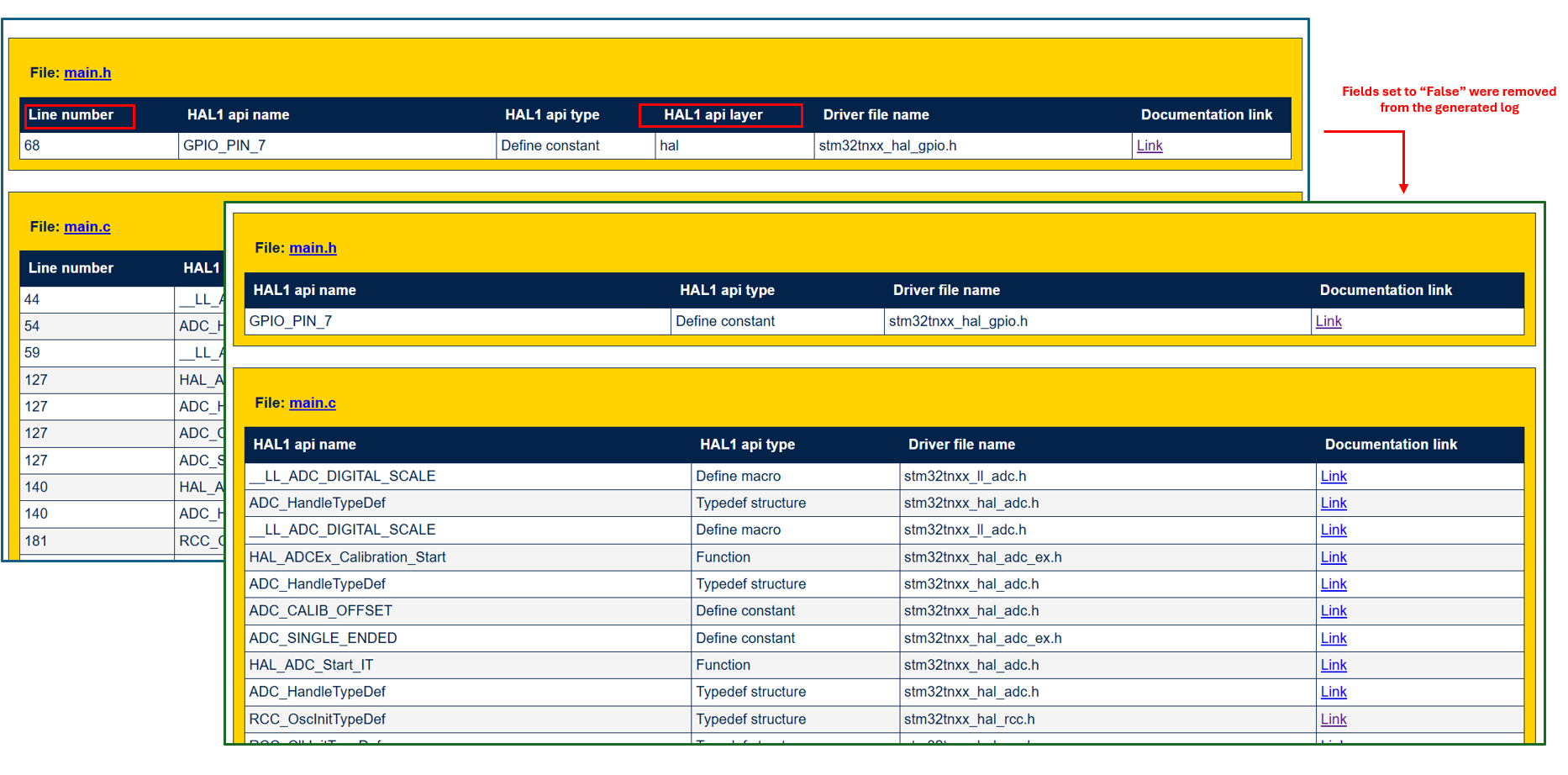 Each occurrence of a HAL1 API within the log is presented as a clickable hyperlink. The hyperlink directs users to the relevant section of the HAL1-to-HAL2 migration documentation. This functionality enables easy navigation and provides quick access to comprehensive migration guidance for each detected HAL1 API.